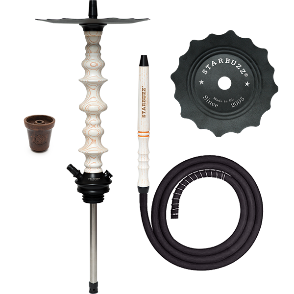 The Starbuzz Wood Line Challenger - Starbuzz brings you their first Premium Wood Line Hookah, comes with a matching Wood Mouthpiece, Matte Silicone hose, Phunnel Clay Bowl, Removable diffuser, Lazer engraved tray, hose connector and a set of grommets with spring.